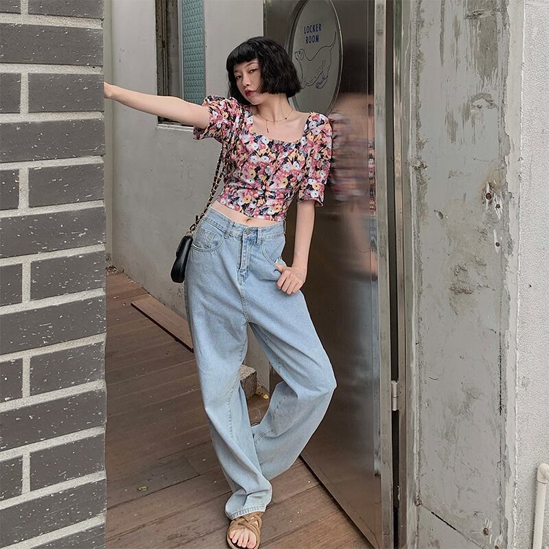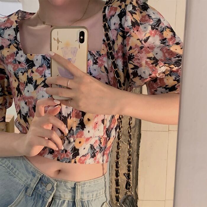 スリーブトップス サマースタイルウェストショートシフォンシャツ 夏物 スクウェア kumikum69102956118