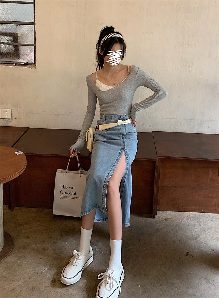 ハイウェスト薄手スカート サマースタンダード レトロ 夏物 kumikum43013360229