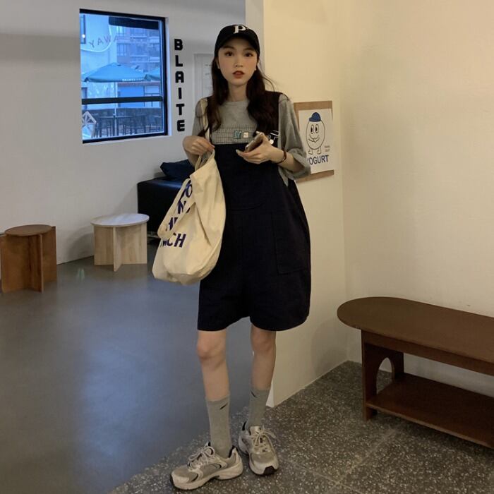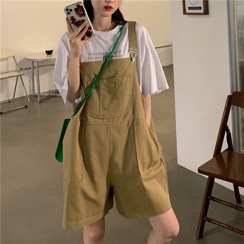 オーバーオール ワイドレッグショーツ レディースサマールーズTシャツ 夏物 ブルマー ワイドパンツ kumikum24835667176