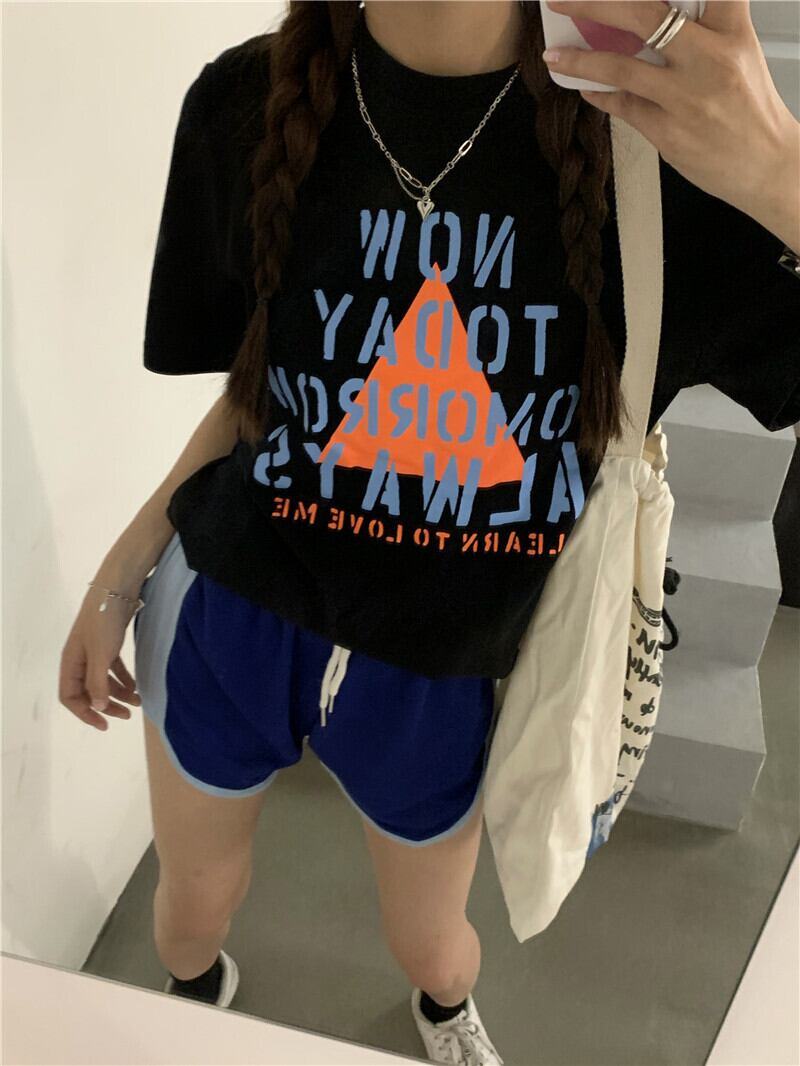 スタイルTシャツ サマールーズプリントレッドトップス かわいい 夏物 kumikum41902839756