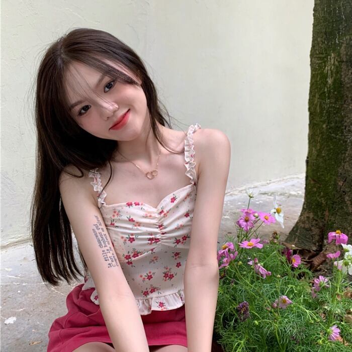 フローラルサマーウェストトップス シャツ ショート 夏物 花柄 kumikum22338062975