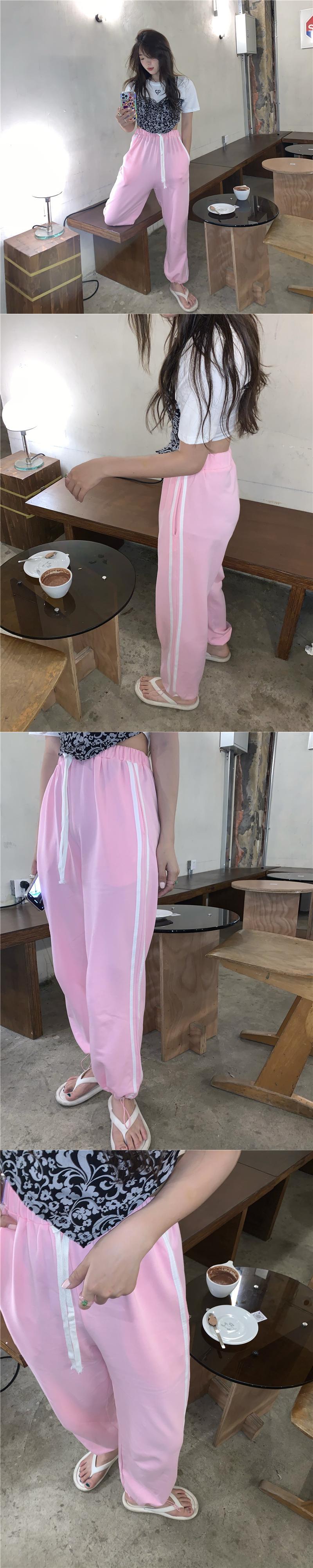 サイドストライプカジュアルパンツ サマールーズハイウェストウェスト薄手ワイドレッグレディース 夏物 ワイドパンツ kumikum56943163401