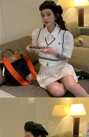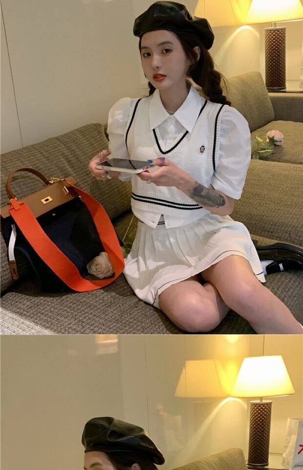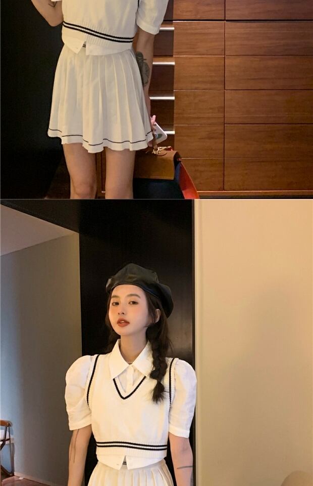 色:ニットベスト,ニットスカート,シャツ