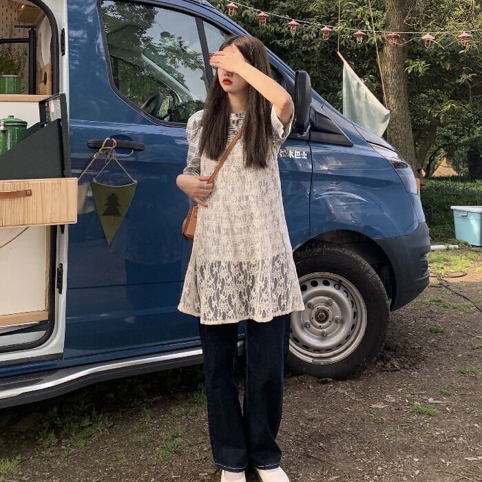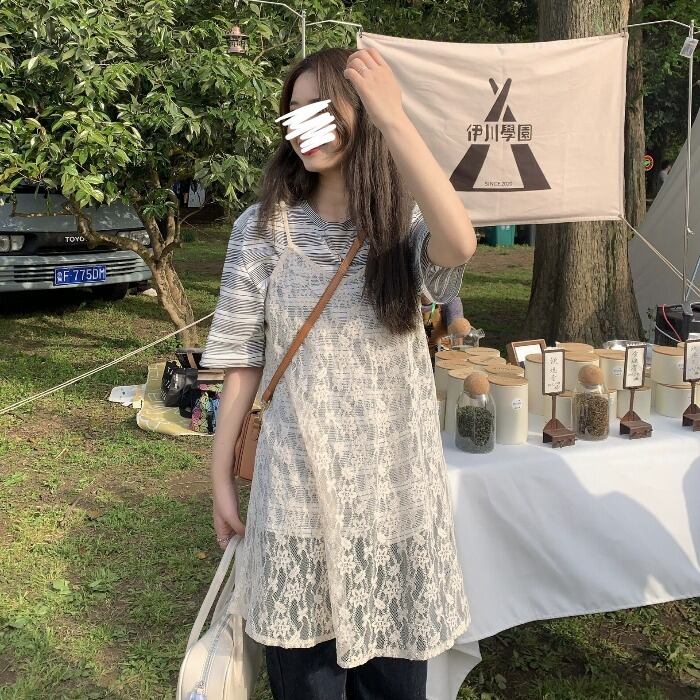 ルーズストライプTシャツ サマーレースシフォンドレス レディース 夏物 kumikum44257158408