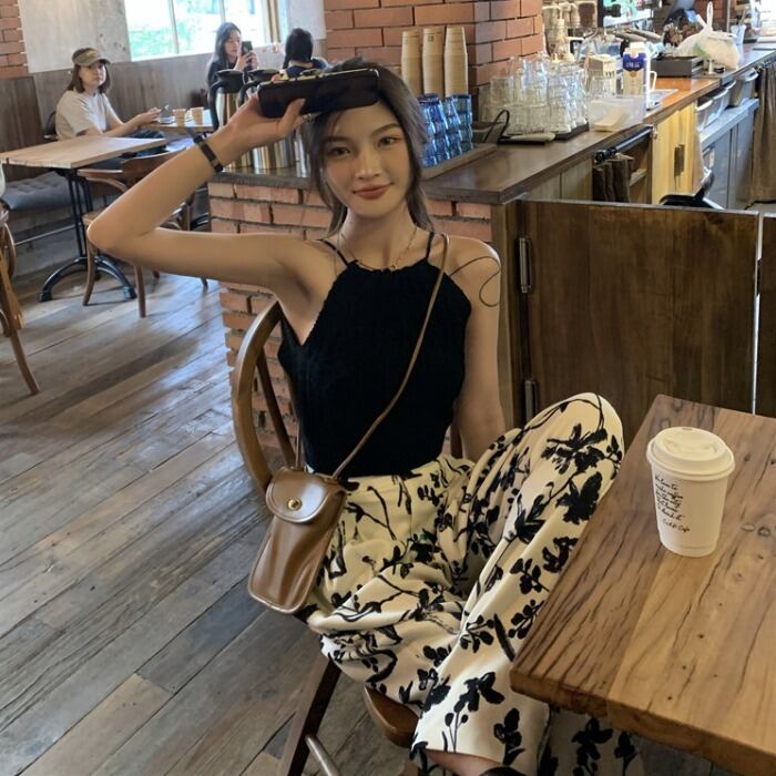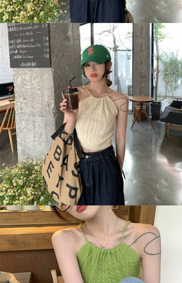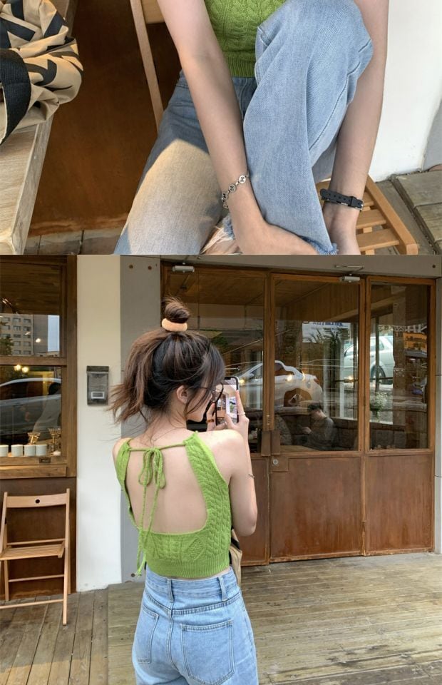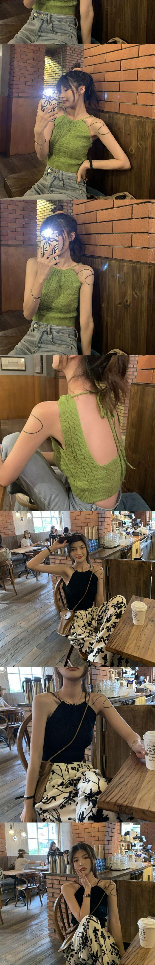 サマースタンダードニットホルターノースリーブトップス レトロ 夏物 kumikum13918671114