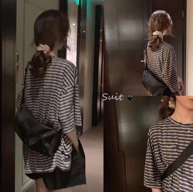 ストライプルーズTシャツ トップス サマーブラックショーツ カジュアル 夏物 ブルマー kumikum359454147