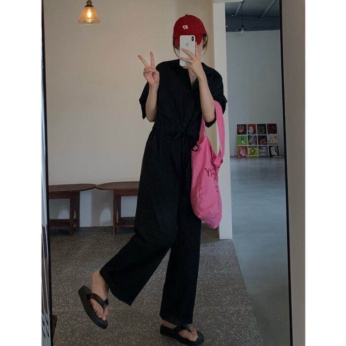 サマーウェストギャザーオーバーオール ルーズカジュアルパンツ 夏物 kumikum92528034505