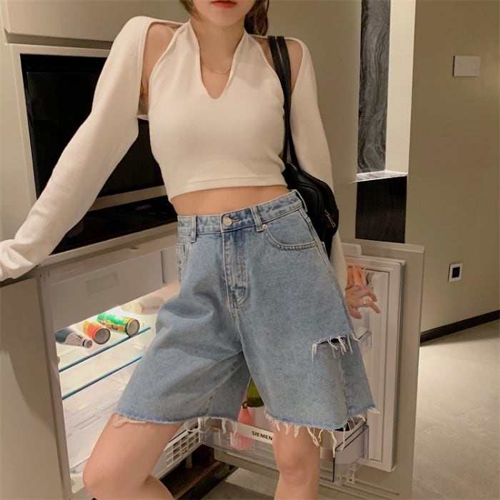 ジーンズ ハイウェストウェスト薄手パンツ ショーツ サマースタンダードルーズ レトロ 夏物 ブルマー kumikum26450861135