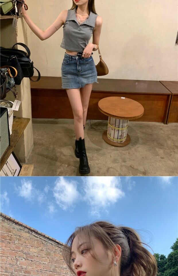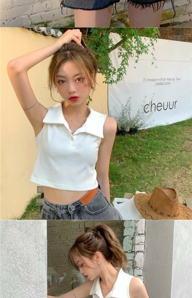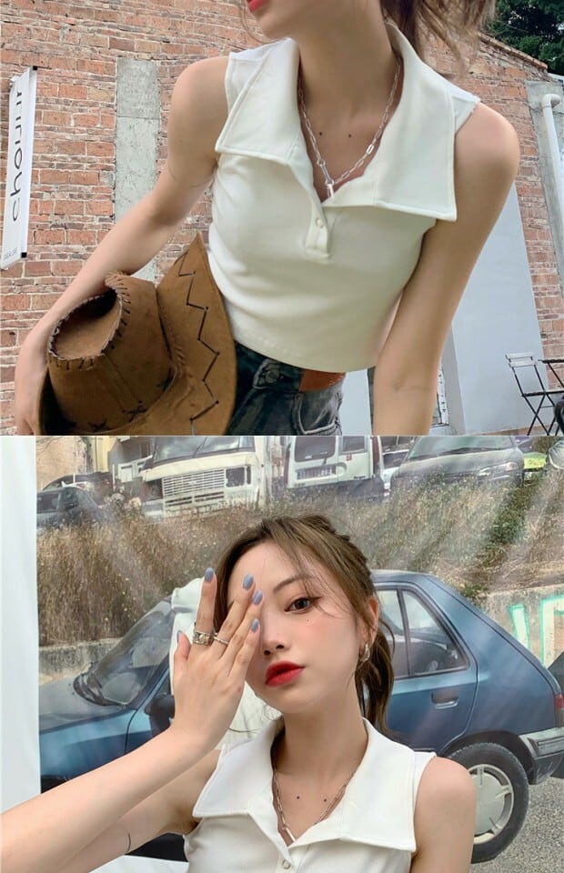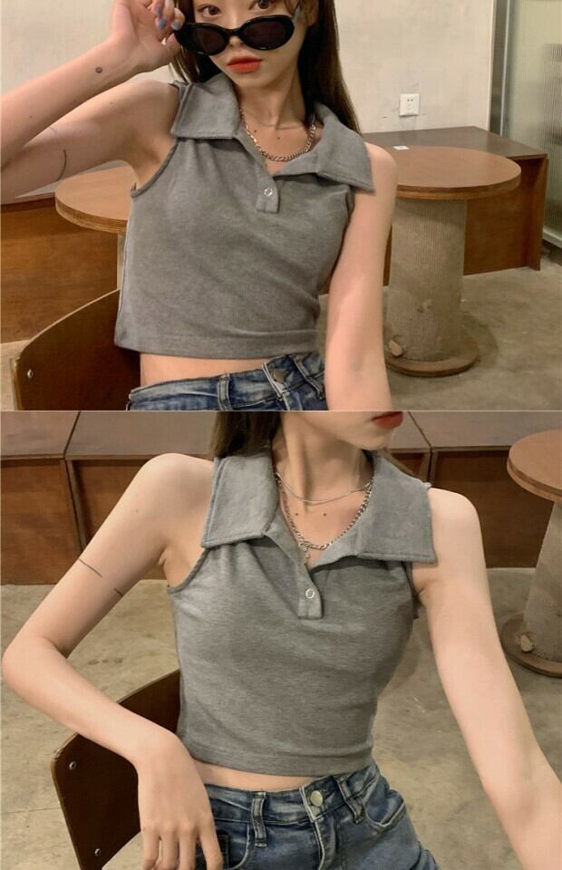 薄手カラーショートTシャツ シャツ サマーノースリーブ 夏物 kumikum62836174317