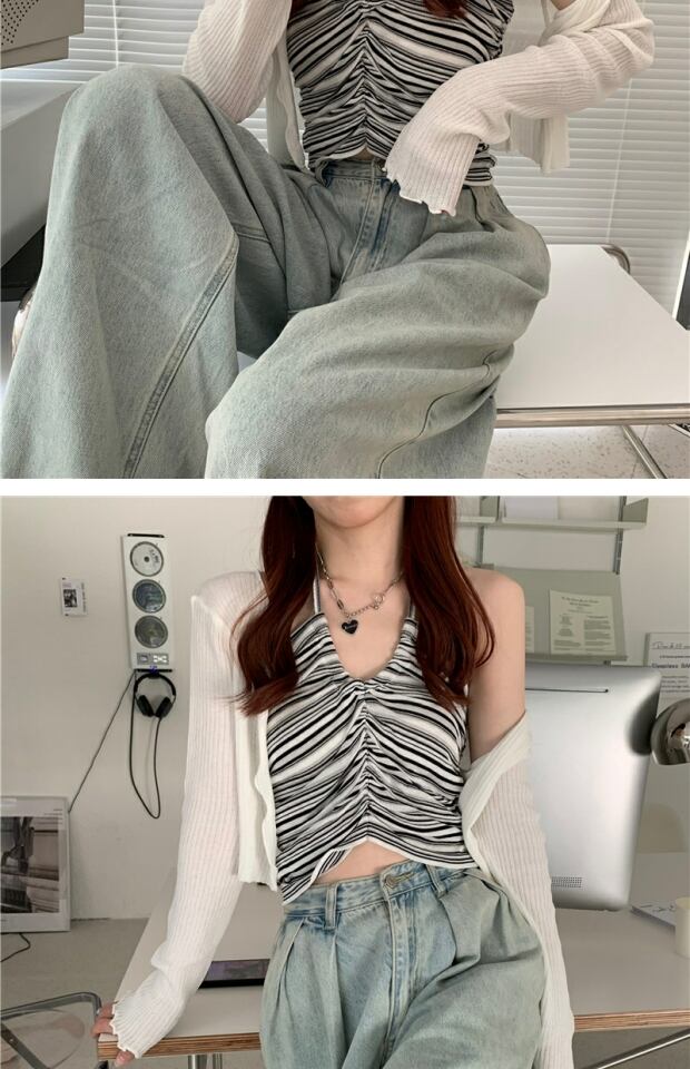 サマーストライプ薄手ニットカーディガン 夏物 kumikum78971116252