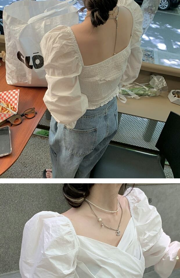 スタンダードスリーブシャツ サマークロスVネック薄手ショートトップス レトロ 夏物 kumikum25523906434