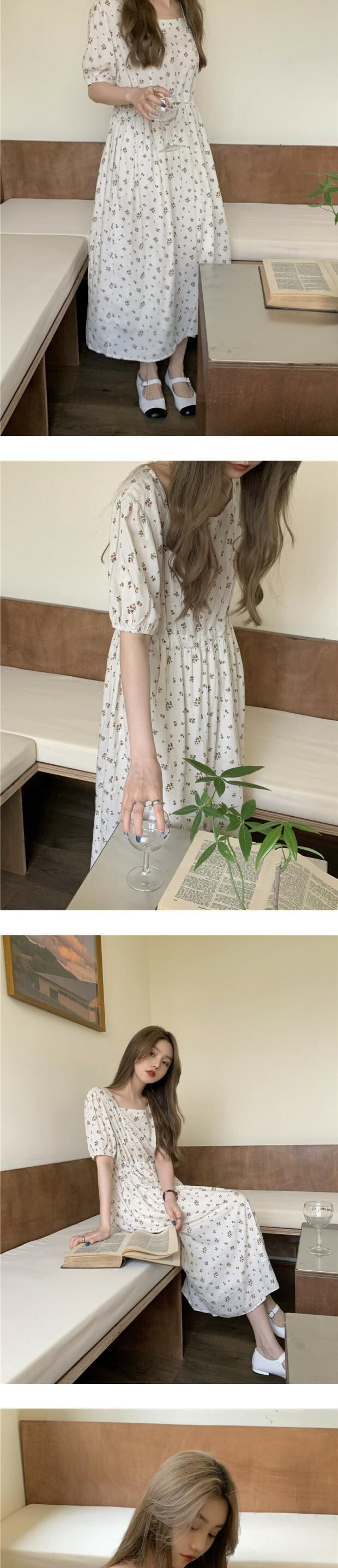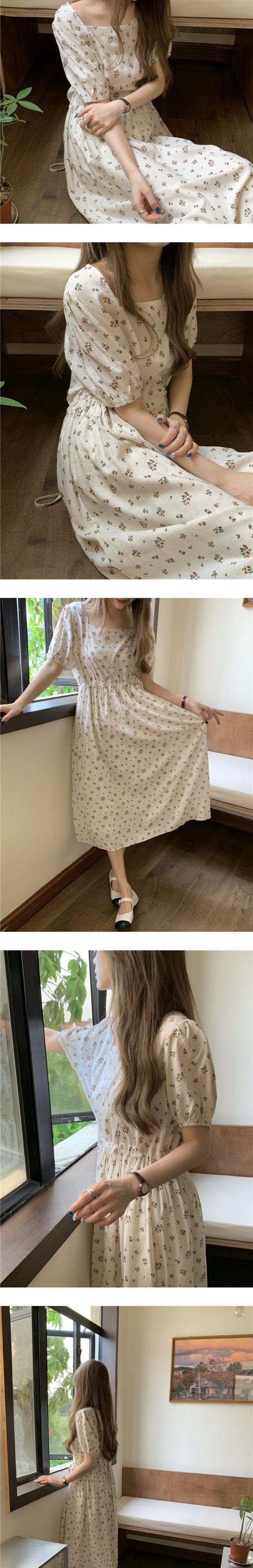 ルーズ薄手ウェストロングドレス サマースタンダードフローラルスカート ホワイトAライン レトロ 夏物 花柄 kumikum4989480412
