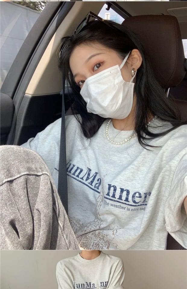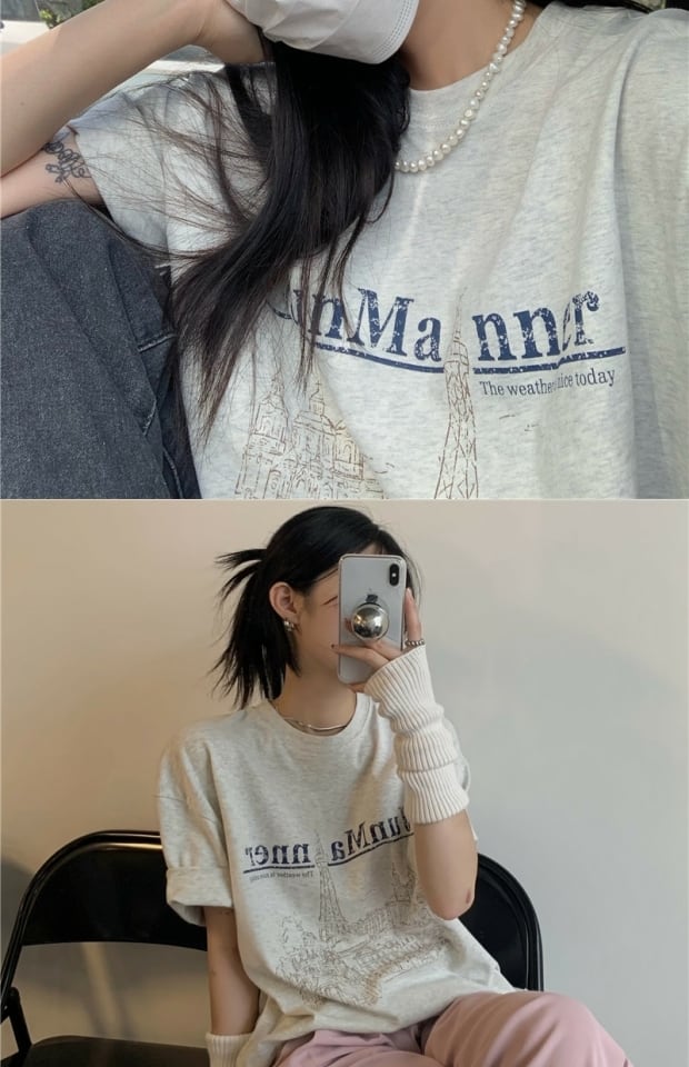 サマースタンダードプリントルーズTシャツ シャツ 薄手 レトロ 夏物 kumikum22826762456