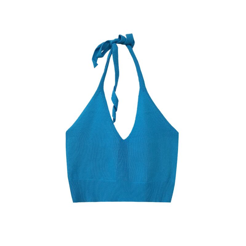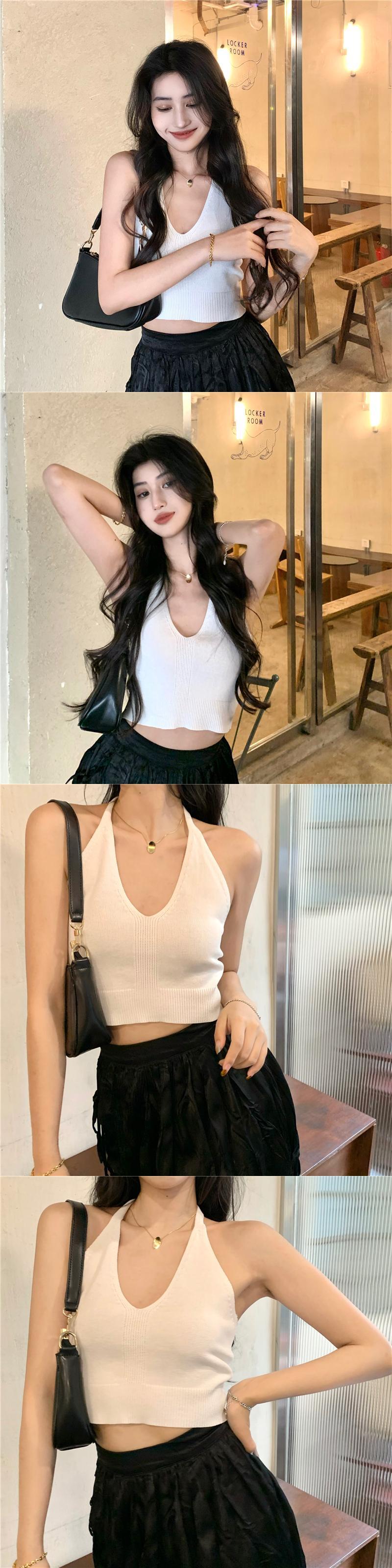 ホルターニットスリムVネックショートトップス レース レースアップ kumikum6633836762