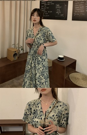 シフォンスカート サマーウェストスリムフローラルドレス スタンダードVネック レトロ 夏物 花柄 kumikum31869998173