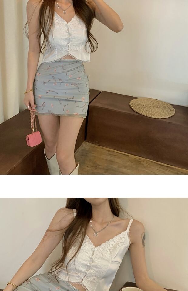 ジャカードレースホワイトトップス サマーハイウェストウェストフローラルスカート レディース 夏物 花柄 kumikum80161226069