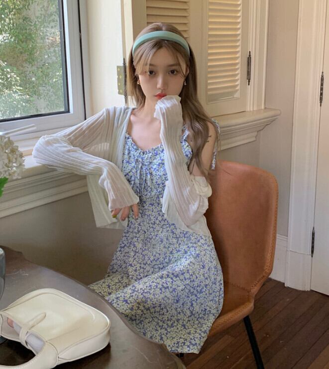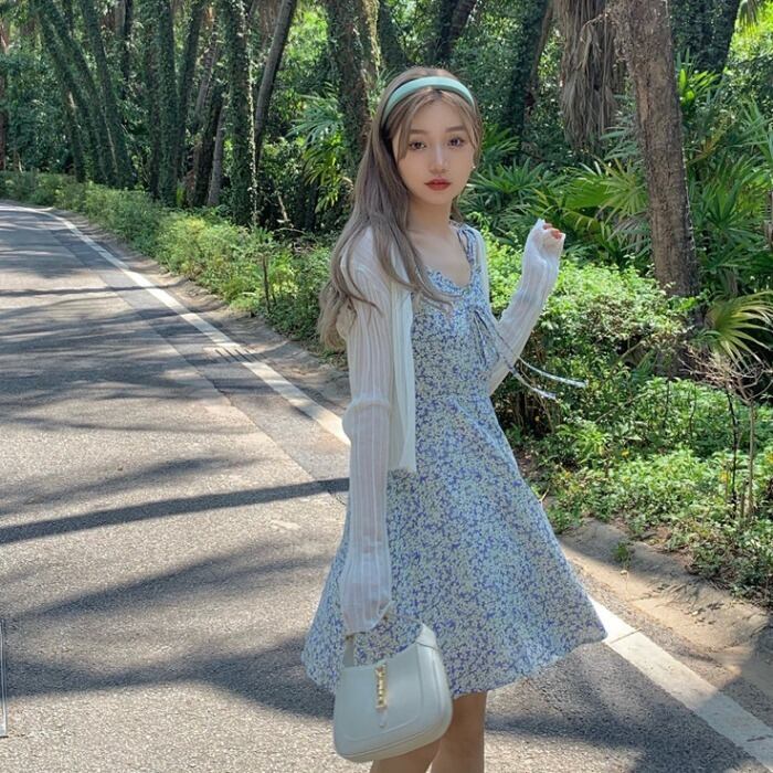 スタイルフローラルウェストスカート サマーニットカーディガン 夏物 花柄 kumikum3506266446