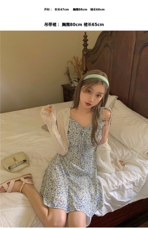 色:青いサスペンダースカート6370,ホワイトニットカーディガン8960