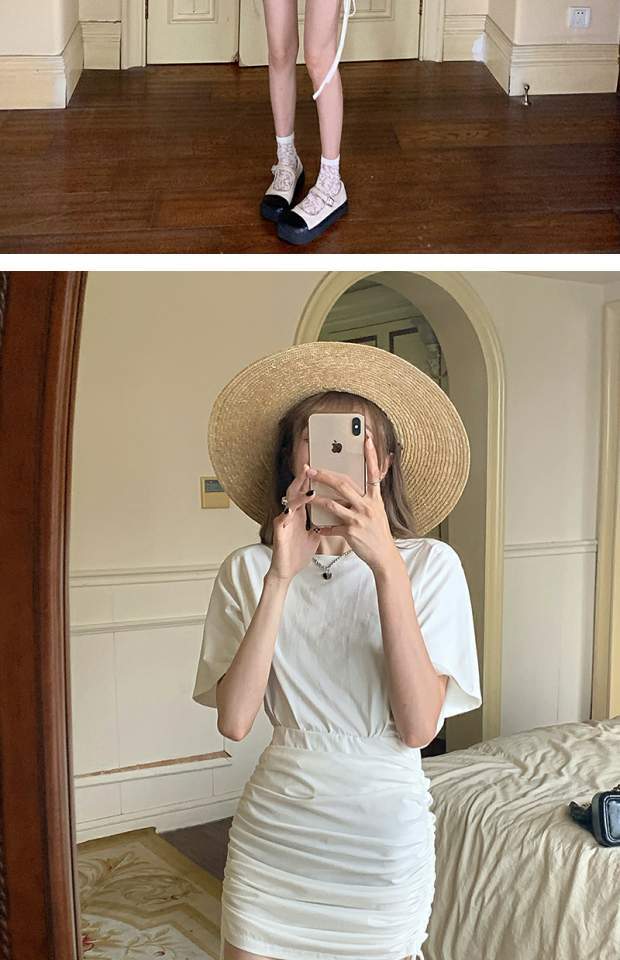ベーシックTシャツ サマーハイウェストギャザープリーツスカート 夏物 kumikum58002707974