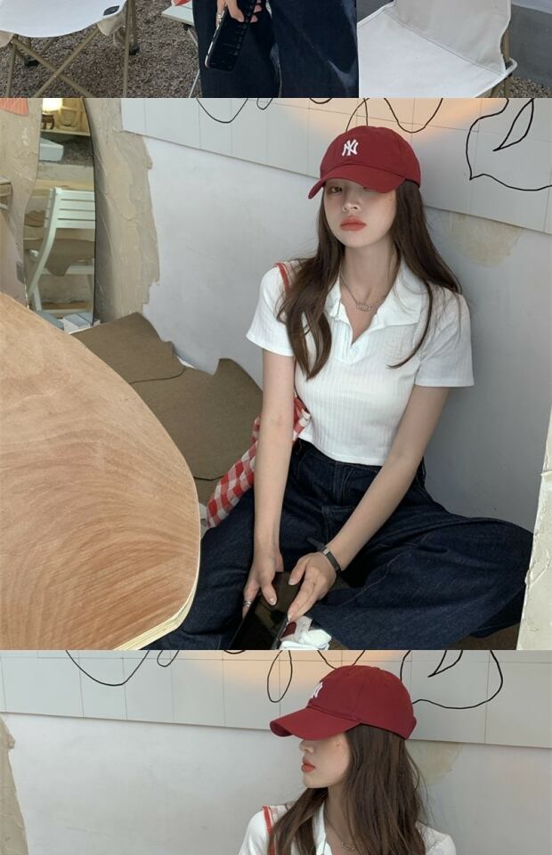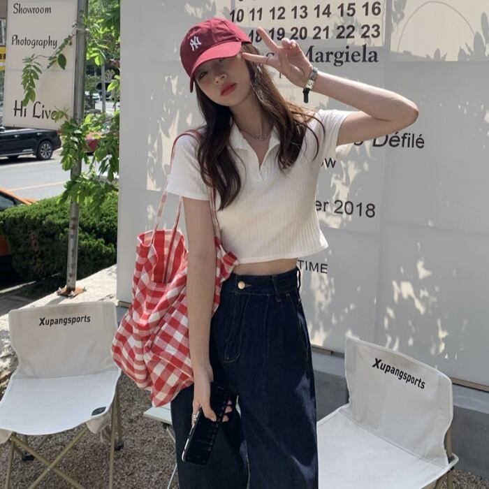 ベーシックカラースリムショートTシャツ サマーニットトップス レディース 夏物 kumikum62985627110