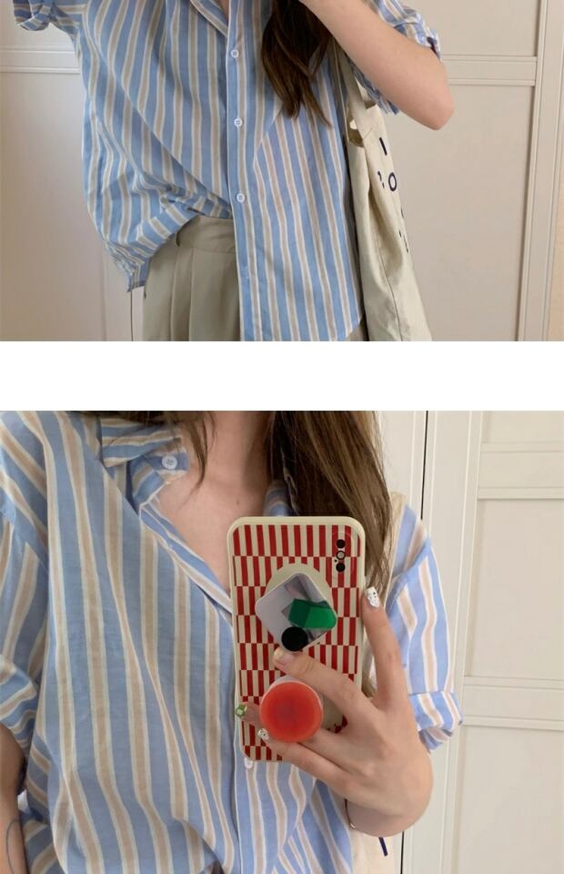 ルーズストライプトップス サマー薄手スタンダードシャツ レトロ 夏物 kumikum55872336541