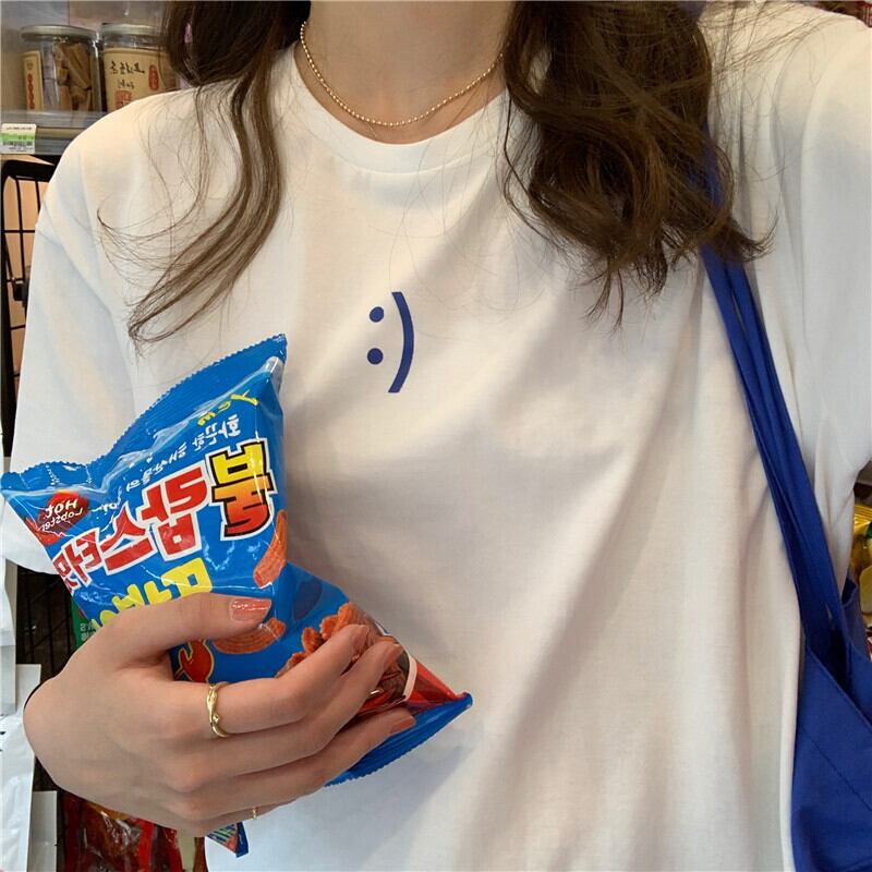 スタイルサマールーズ薄手ホワイトラウンドネックプリントTシャツ 夏物 Oネック kumikum69427481131