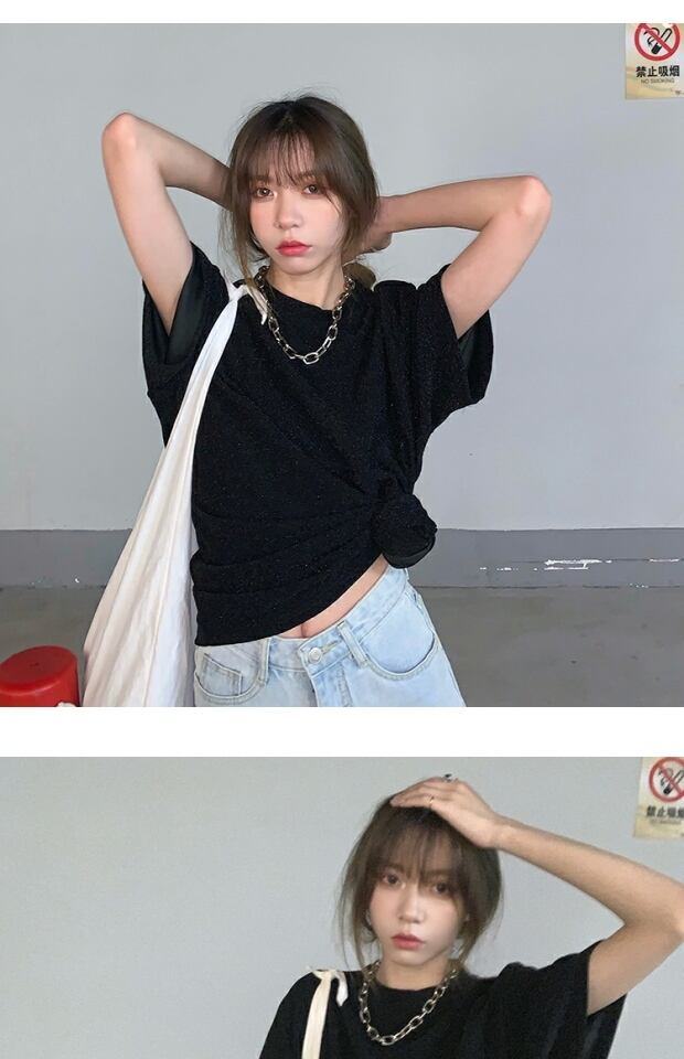 サマーTシャツ シャツ ルーズラウンドネックトップス 夏物 Oネック kumikum68852768932
