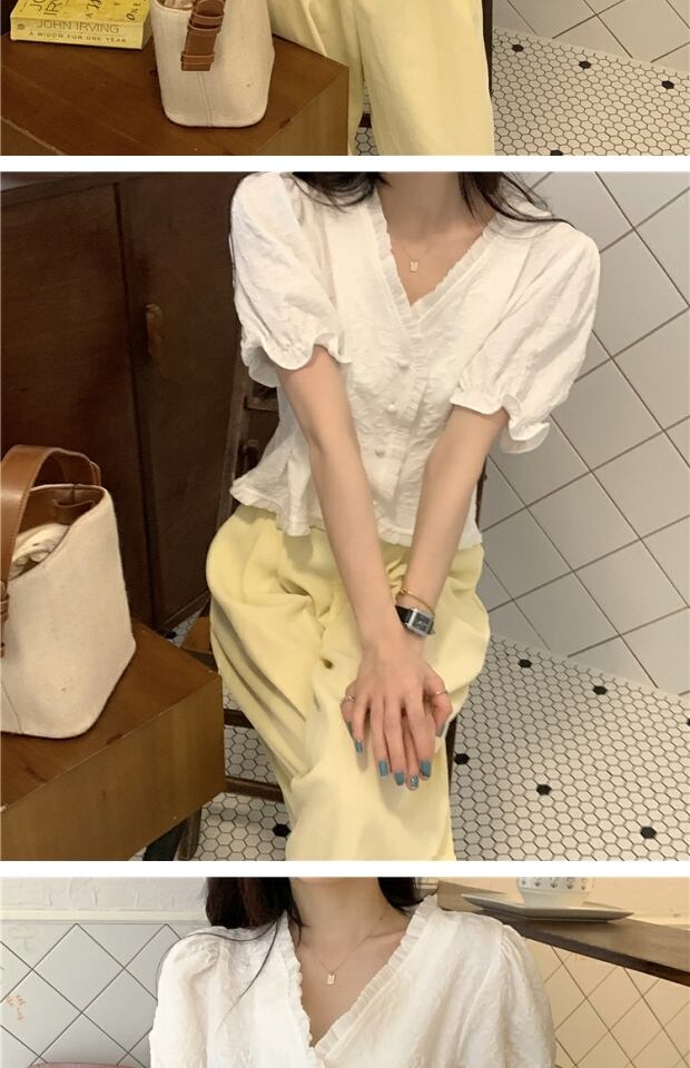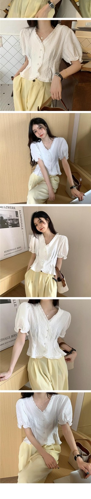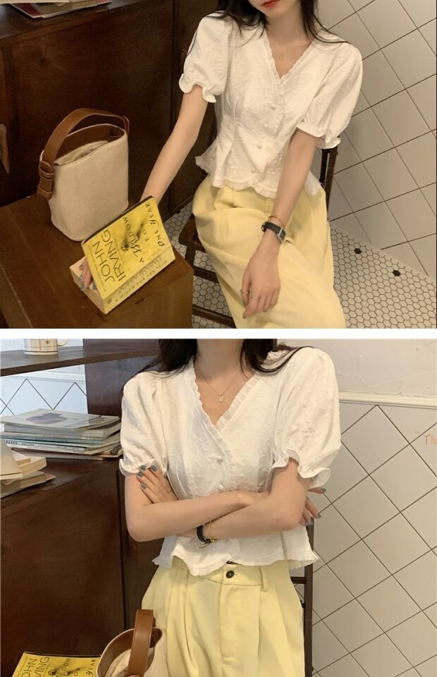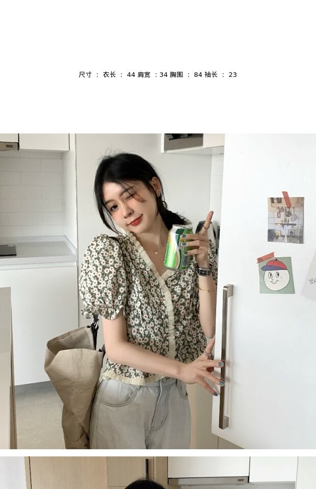フローラルシャツ サマーVネックレーススリーブショートトップス 夏物 花柄 kumikum55026613564