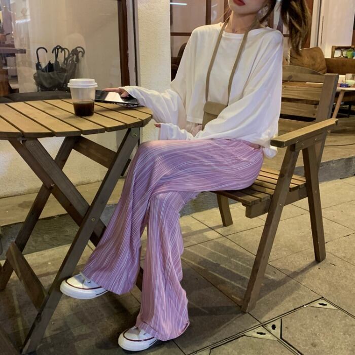 サマーハイウェストウェストスリムパンツ ルーズレディース 夏物 kumikum63412029725