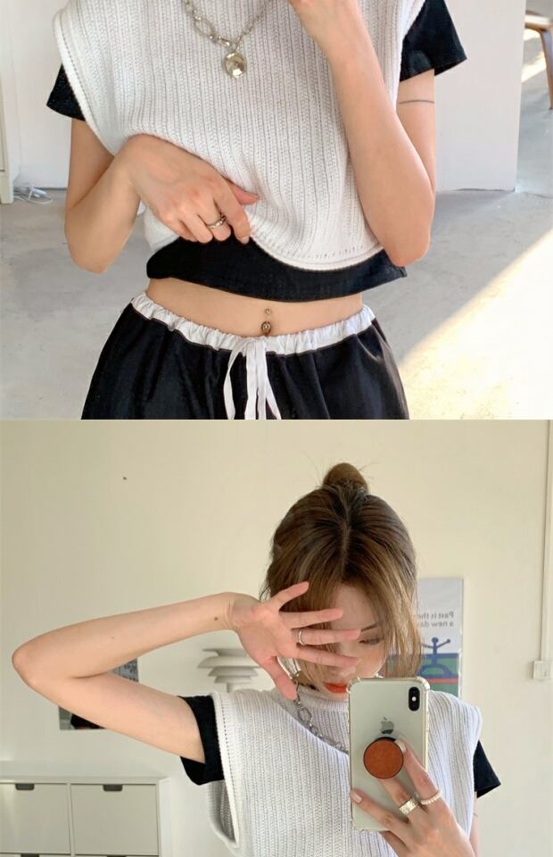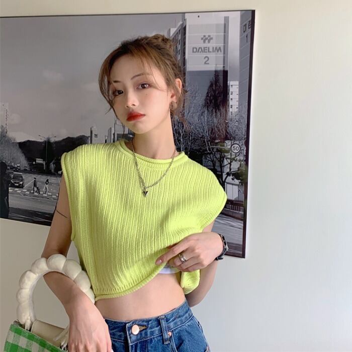 ノースリーブホワイトニットレディースサマールーズラウンドネック薄手トップス 夏物 Oネック シルク kumikum87022160711