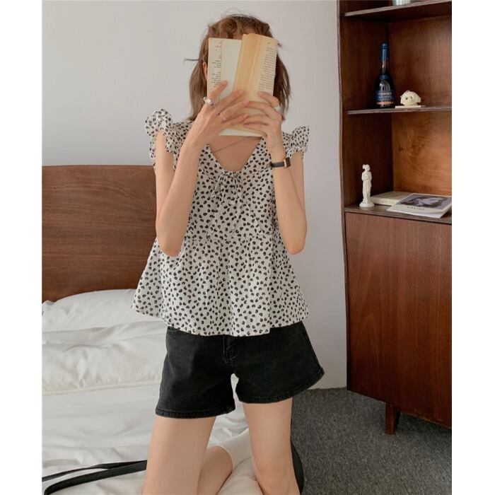 スタイルVネックフローラルブラウス 薄手スリーブシャツ サマー 夏物 花柄 kumikum58374877287
