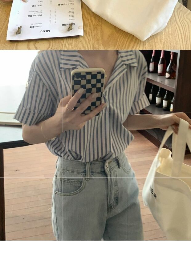 Vネック薄手ストライプシャツ サマーベーシックカジュアルトップス 夏物 kumikum24975669717