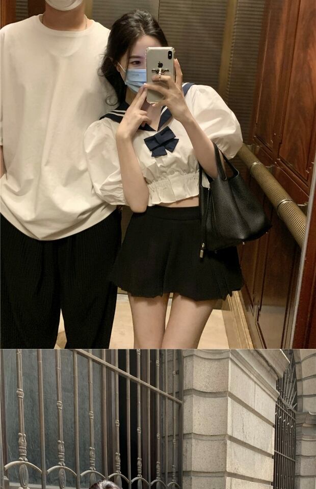 サマーネイビーカラーショートシャツ ブラックスカート レディース 夏物 kumikum61106886950