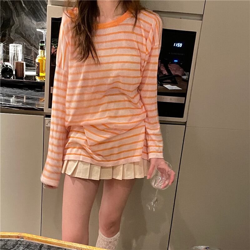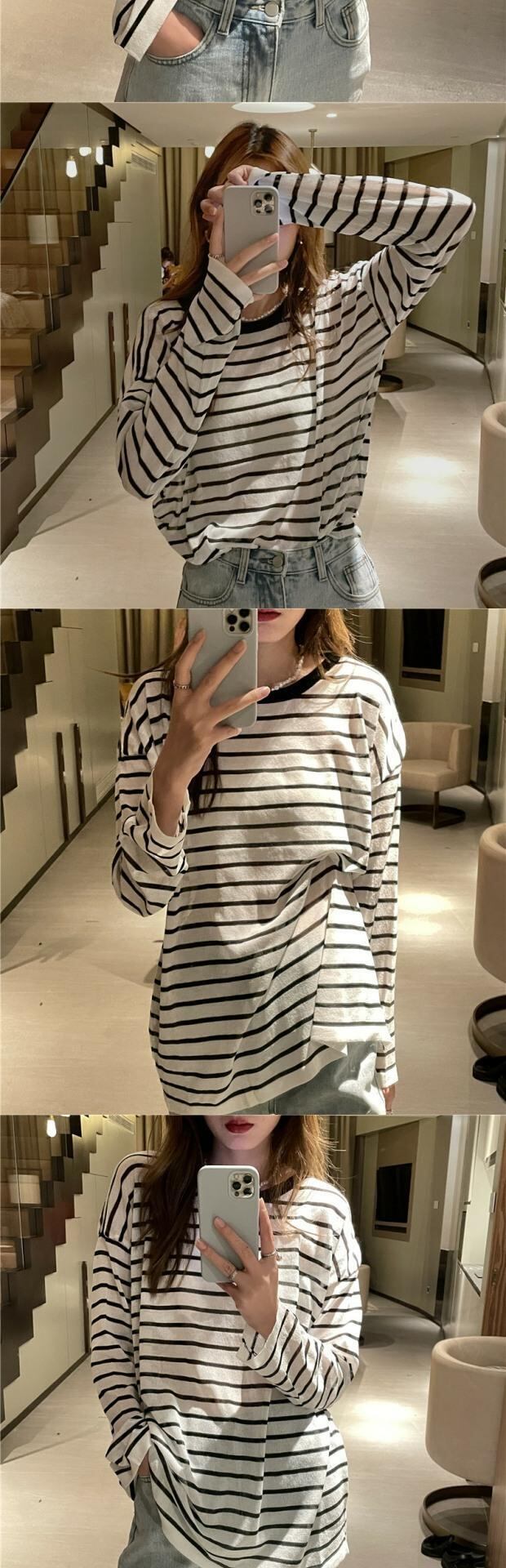 ベーシックストライプニットトップス サマールーズカジュアルTシャツ 夏物 kumikum59981301989