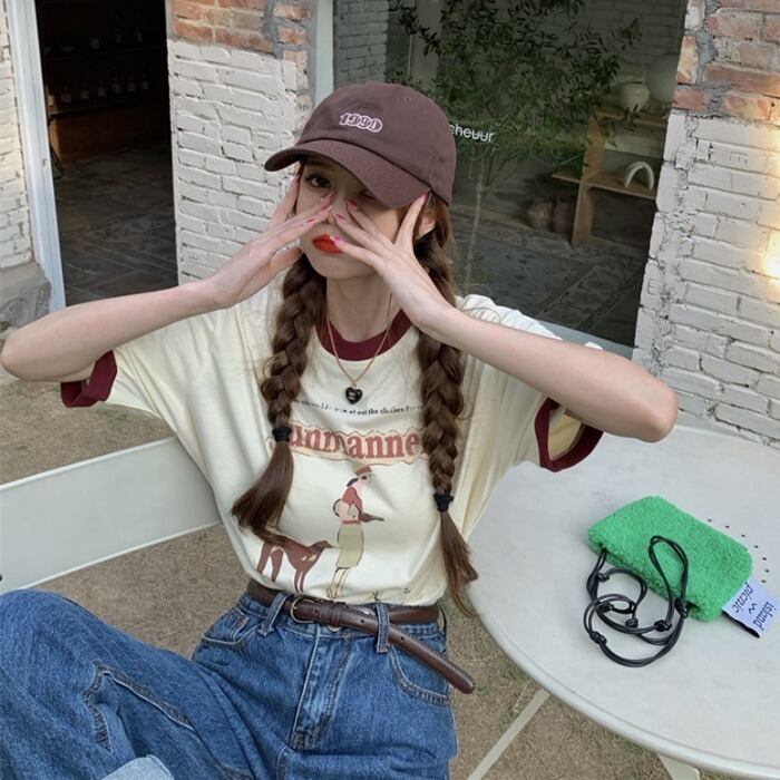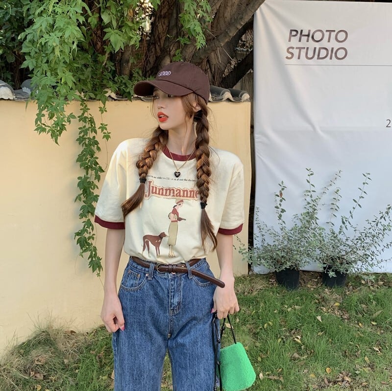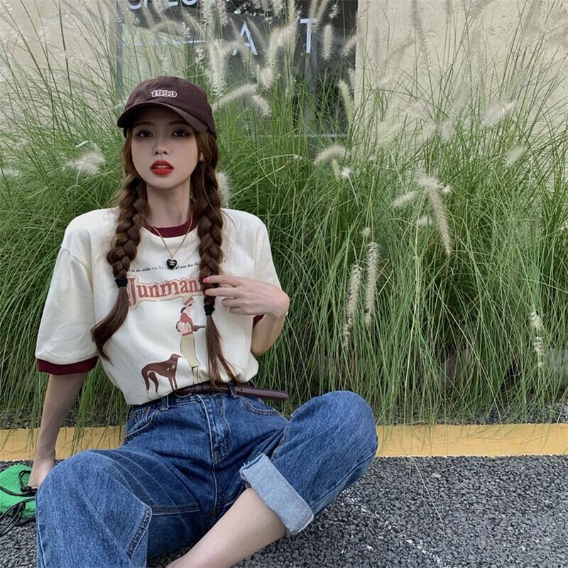 Tシャツ サマーラウンドネックプリントカジュアルブラウス レディース 夏物 Oネック kumikum9269119823