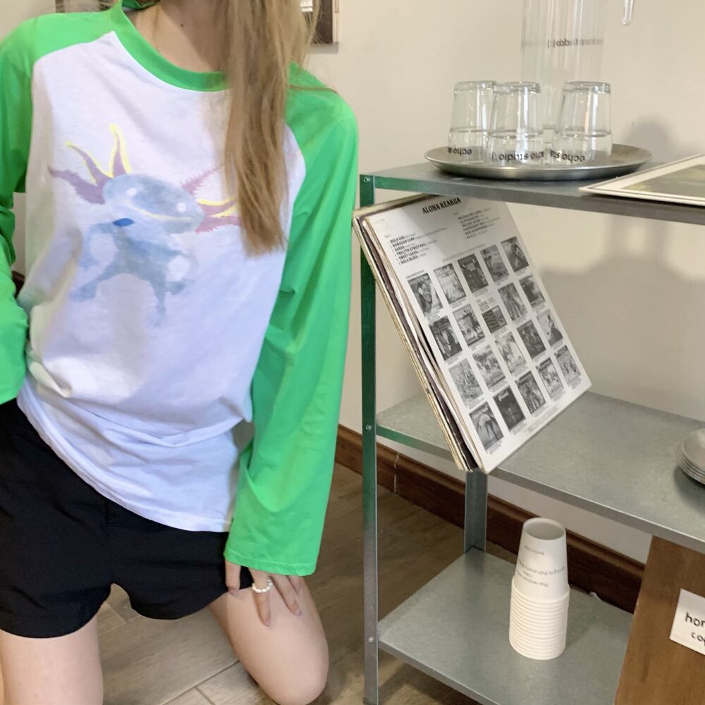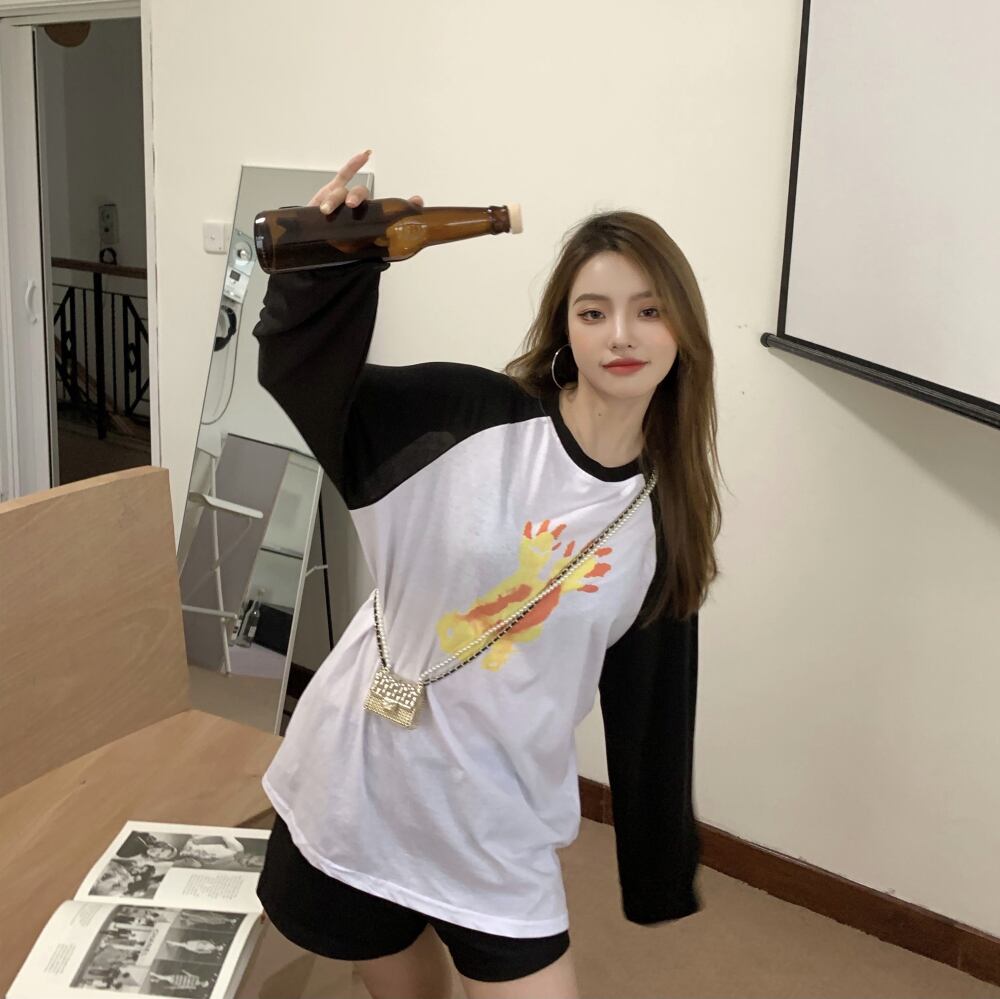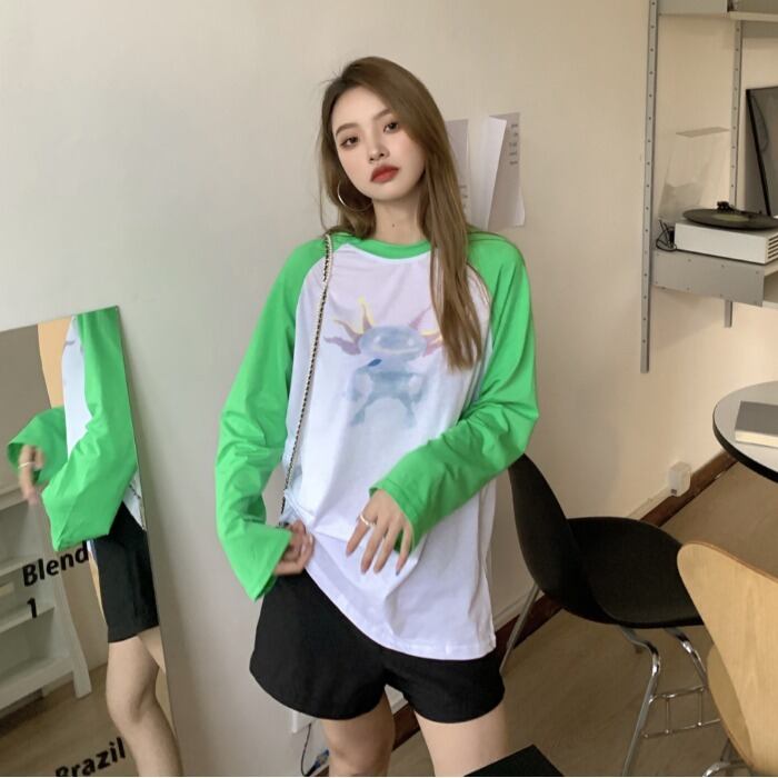 サマースタイルカラープリント薄手Tシャツ トップス レディース ロング 夏物 kumikum49023844296
