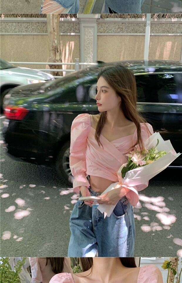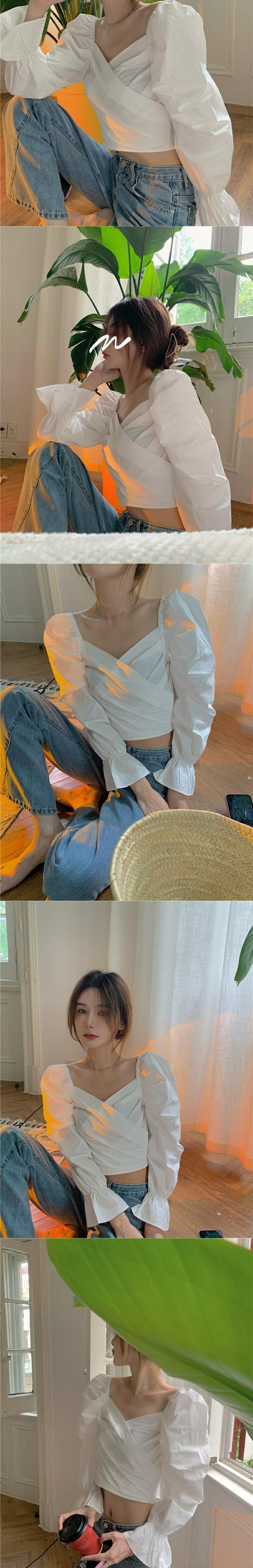 Vネックシャツ サマースタイルスリムホワイトブラウス レディース ロング 夏物 kumikum83064637786