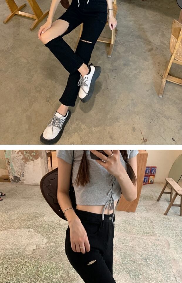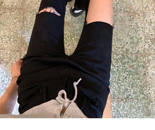 ジーンズ レディースサマーハイウェストウェストブラックカジュアルパンツ 夏物 kumikum42254540142