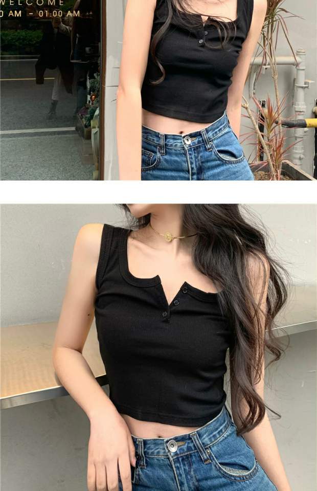 サマースリムノースリーブTシャツ トップス ショートソリッド カラーレディース 夏物 ソリッドカラー kumikum62372901422