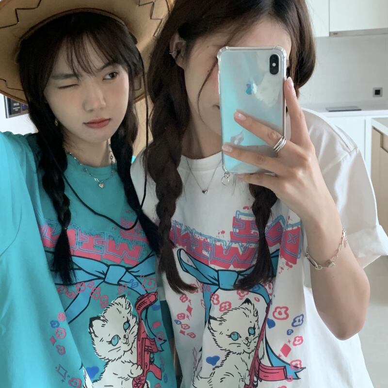 ブルーTシャツ シャツ サマールーズトップス 大人ガーリー スウィート キュート カジュアル 夏物 kumikum40103313632