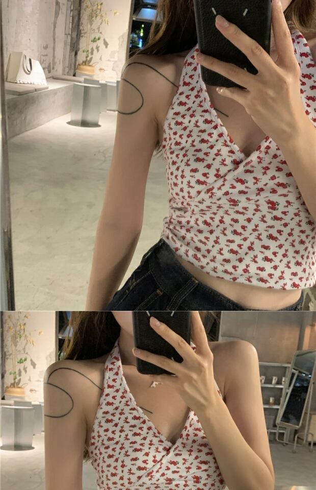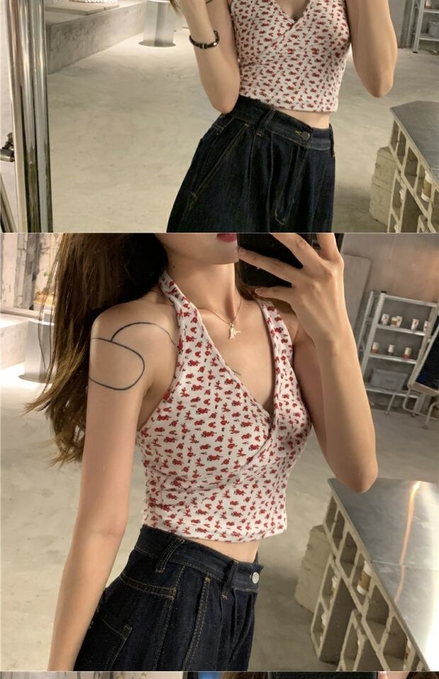 フローラルサマーVネックスリムショート 夏物 花柄 ピュア kumikum34782945403