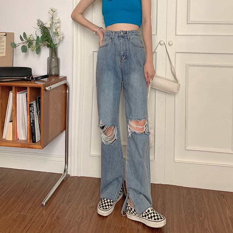 サマージーンズ ハイウェストウェストパンツ ルーズワイドレッグレディース 夏物 ワイドパンツ kumikum90994034116