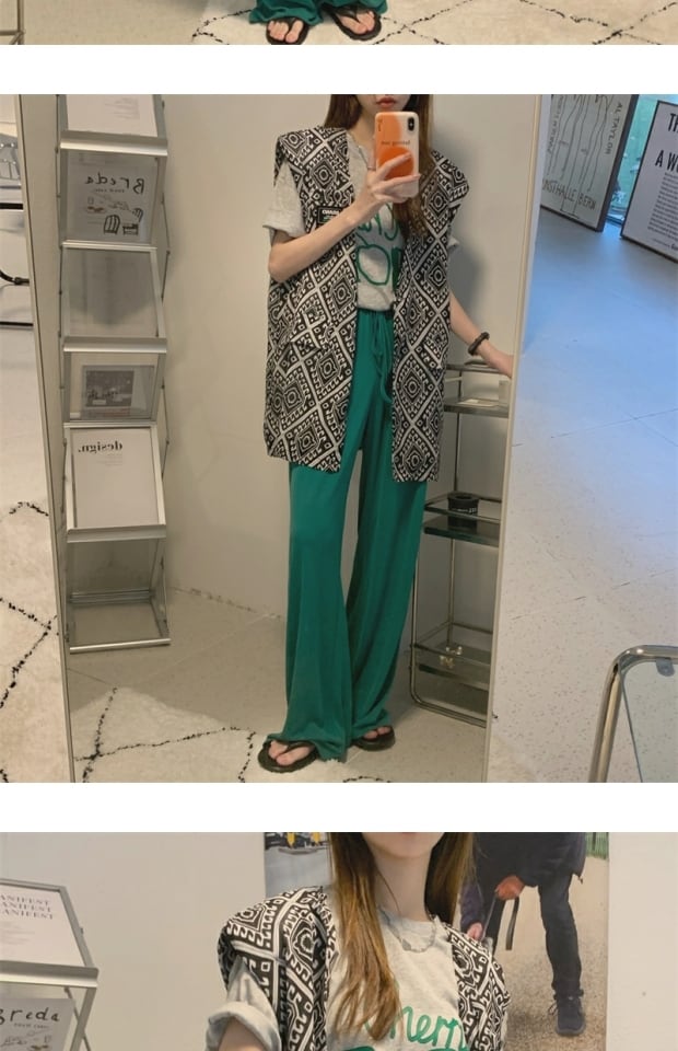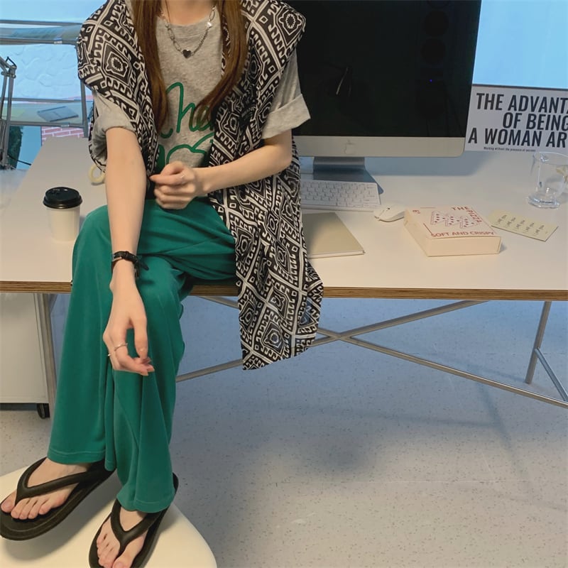 グリーンプリントTシャツ サマーハイウェストレディース 夏物 kumikum18758648594