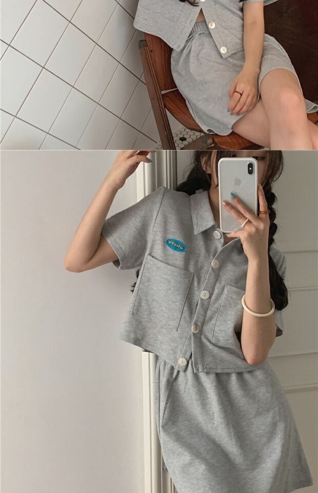 レディースサマーカラー半袖スリーブカーディガントップス ウェストグレースカート ツーピース セット ショート ハーフスリーブ 夏物 kumikum59706206986