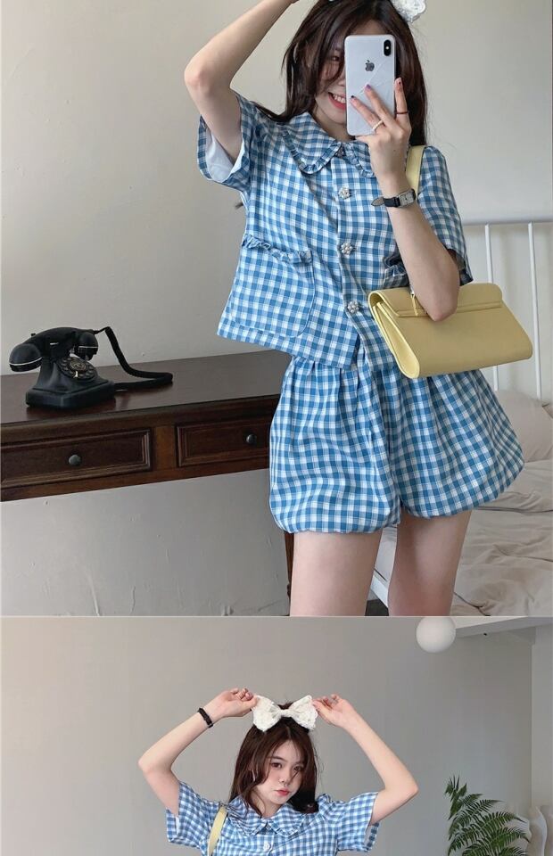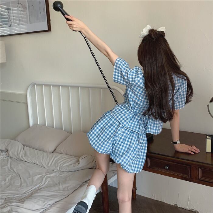 スタンダード格子柄カラーシャツ サマーショーツ レディース レトロ 夏物 ブルマー kumikum56339525359