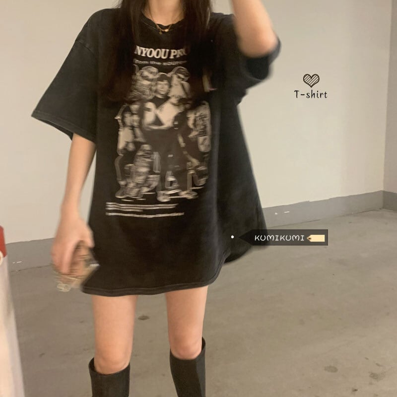 スタイルTシャツ サマールーズスタンダードプリント柄トップス レトロ かわいい 夏物 kumikum64408183346
