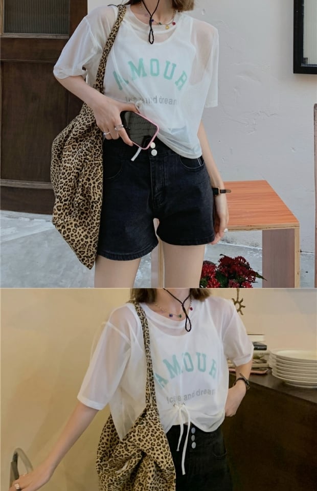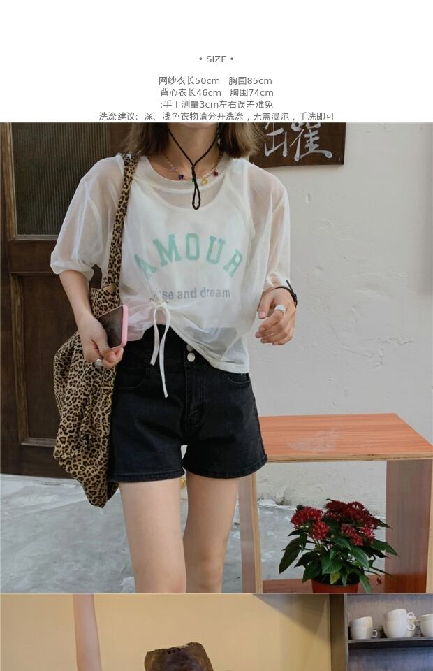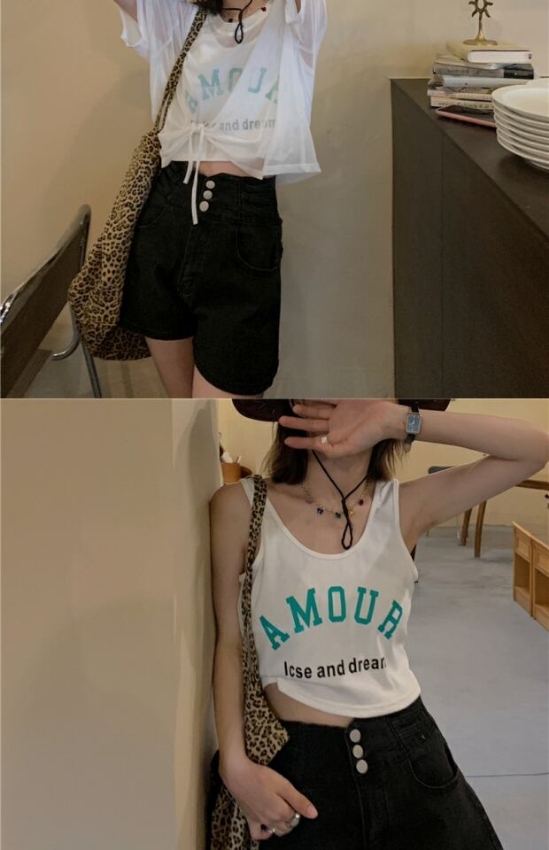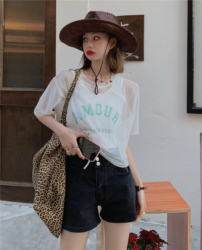 プリントノースリーブサマーメッシュトップス レディース 夏物 kumikum27433803749