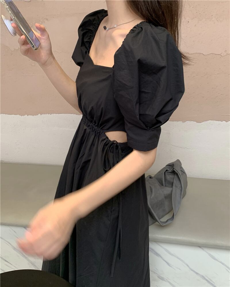 ウェストギャザー薄手Aラインスカート サマースリーブドレス レディース 夏物 スクウェア kumikum4924148325