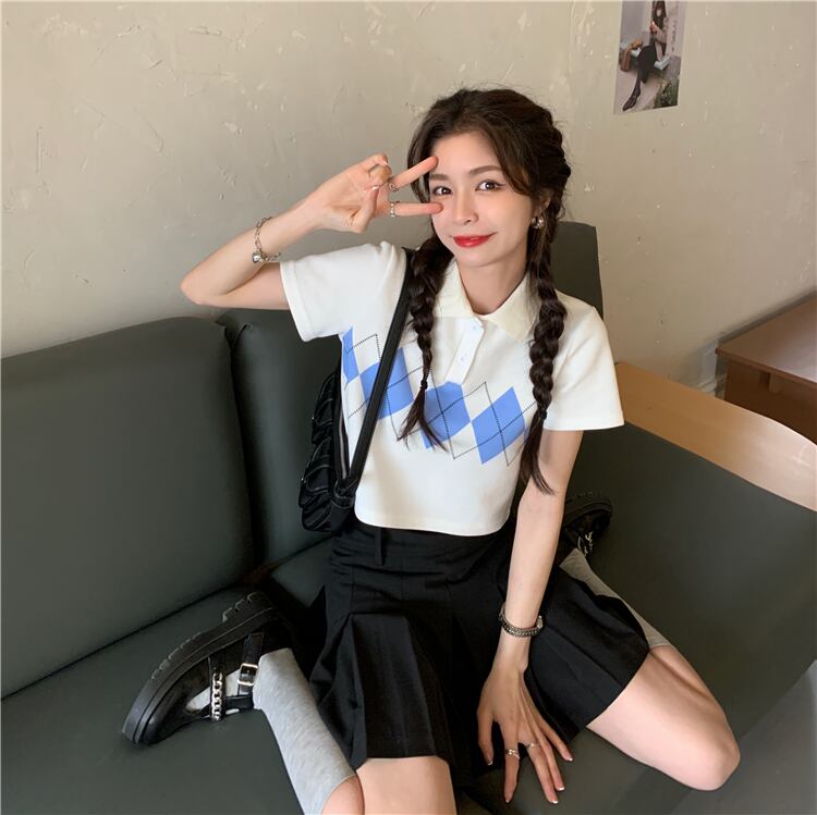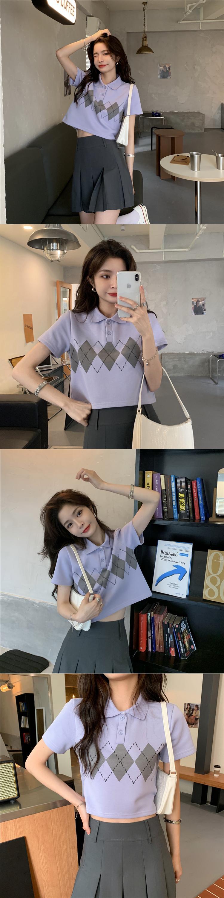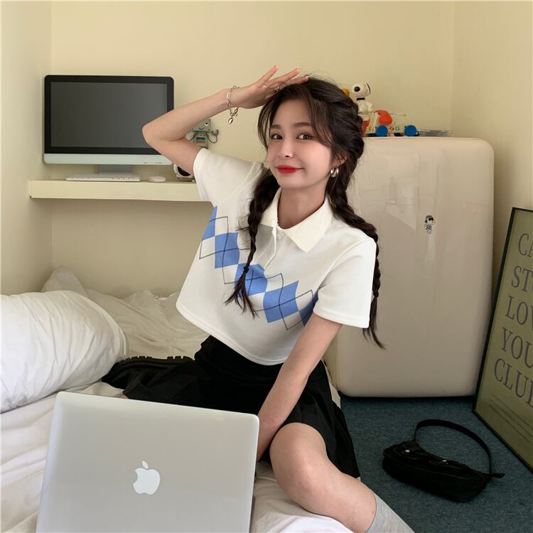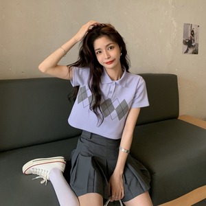 スタイルカラースリムシャツ サマースタンダードショートTシャツ トップス レトロ 夏物 kumikum28652791030