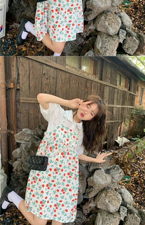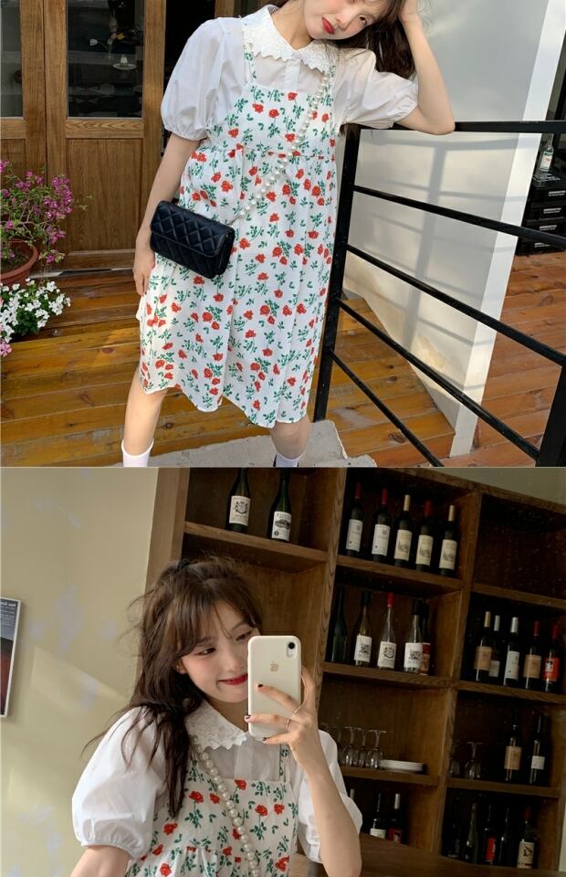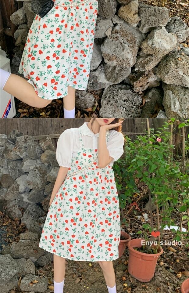 Vネックフローラルスカート サマースリーブホワイトシャツ レディース 夏物 花柄 kumikum37692699642
